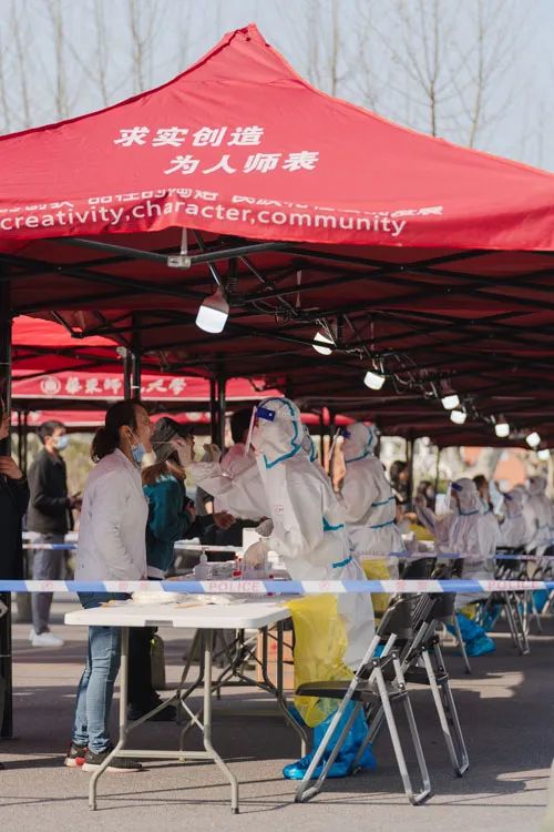 3月14日起,华东师大在两校区设三个核酸检测点,组织开展了第2轮师生员工全员核酸检测,两校区共检测22442人。保卫、后勤等重点岗位人员实行每天一测,确保校园安全。