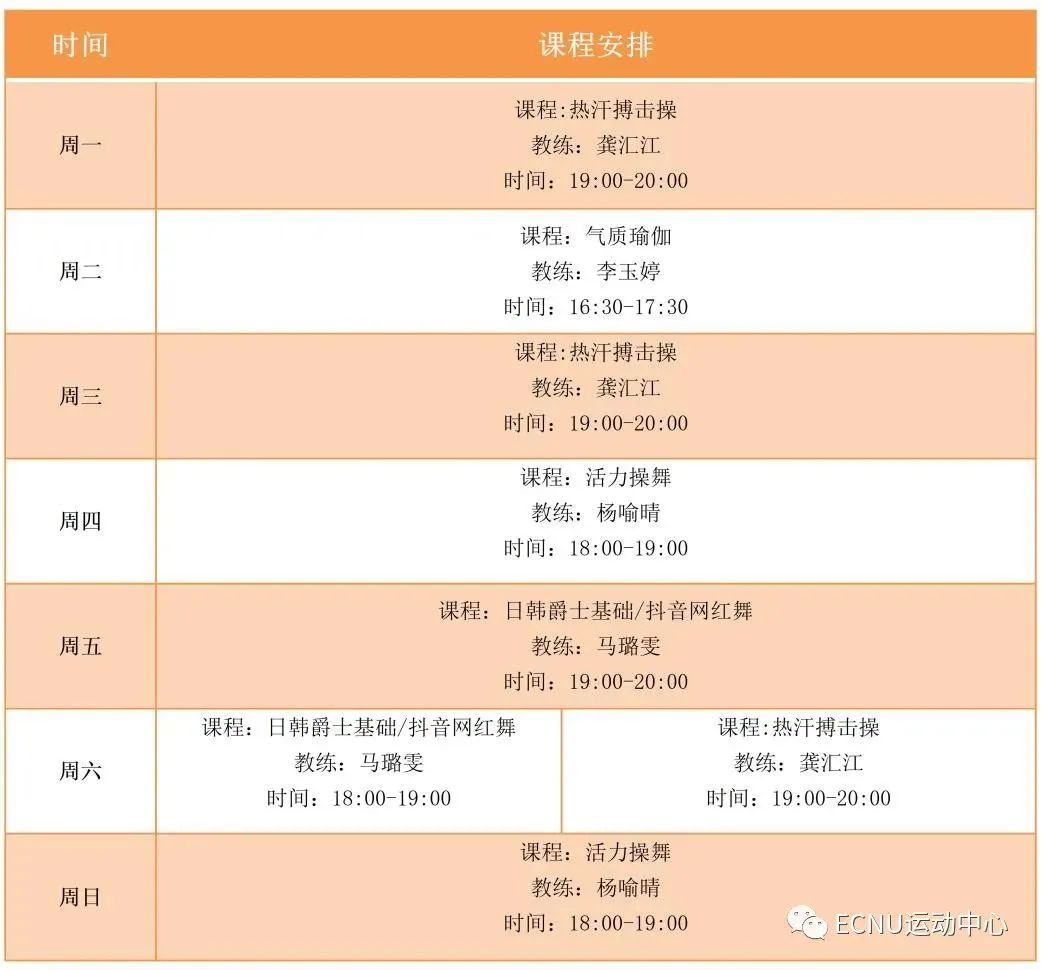 3月15日起,ECNU运动中心推出线上操课,包括气质瑜伽、热汗搏击操、燃脂塑形操,以及欧美爵士/抖音网红舞课程。居家防疫,体健同行,春暖花开,让我们共同拥抱健康快乐吧!