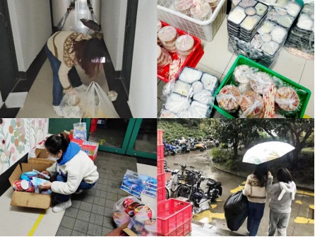 校园志愿者送餐、分发防疫物资、回收垃圾
