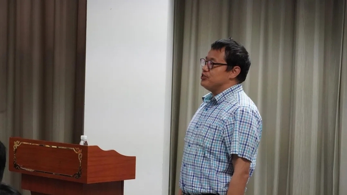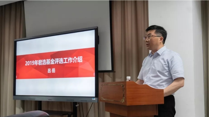 ▲通信与电子工程学院院长吕岳介绍2019年君浩基金评选工作流程