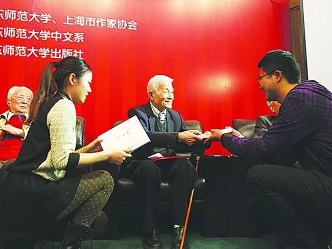 先生不但如此说,更是如斯践行。2013年11月8日,华东师范大学为徐中玉先生举行百岁寿诞庆祝会,先生将稿费等生平积蓄一百万元捐给师大中文系成立“中玉教育基金”。“虽然年届百岁,在有生之年我还要继续努力,做一些力所能及的事,为我一生钟爱的文学事业贡献一分力量。拿出一些积蓄支援贫困学生是我长久以来的夙愿,数目不多,略表心意而已,谢谢大家给这个机会。”先生说,希望受助学生能够多多用功,努力读书、写文章,飞得越高越好。他还说成立这个基金“不是钱的问题”,重要的是学生们能够发展得更好,成为好的教师、优秀的人才,“为国家效力”。说到这里,先生的话语尤其清晰有力,不难感受到他殷切的期望。