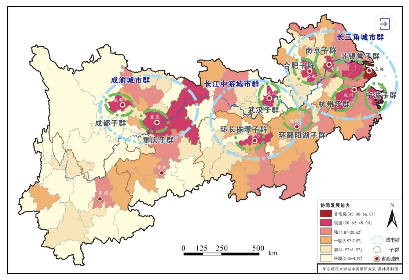▲ 长江经济带城市协同发展能力城市组团分布图(2020)