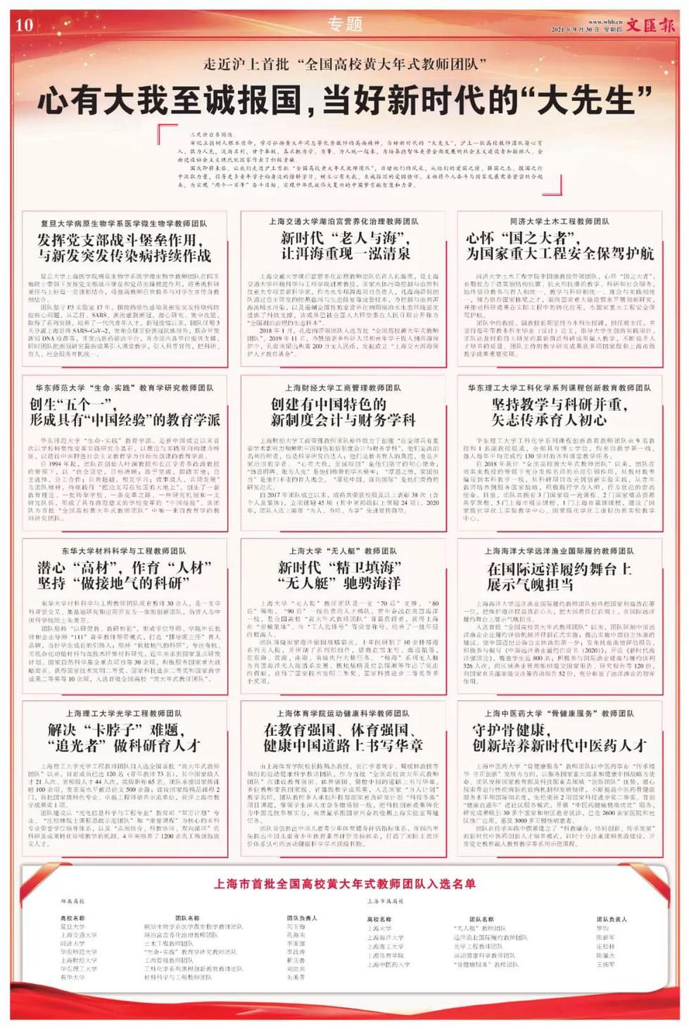 9月30日《文汇报》专版报道