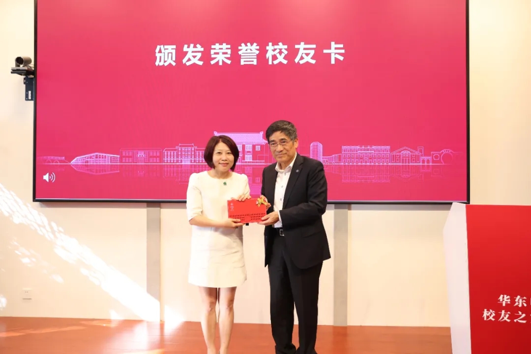▲ 童世骏为1986级中文系钱倩校友颁发荣誉校友卡