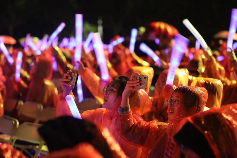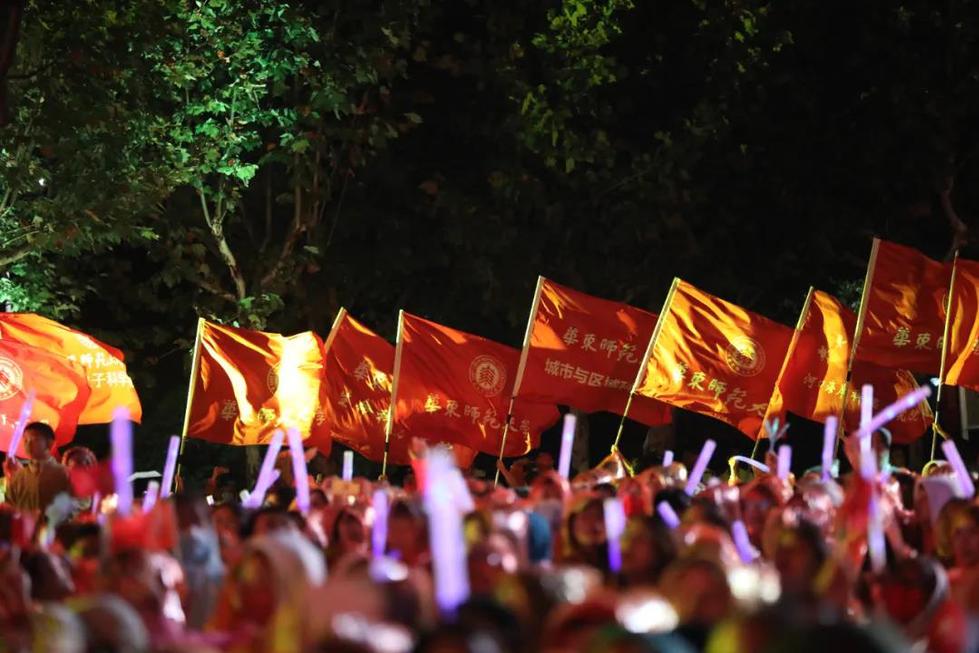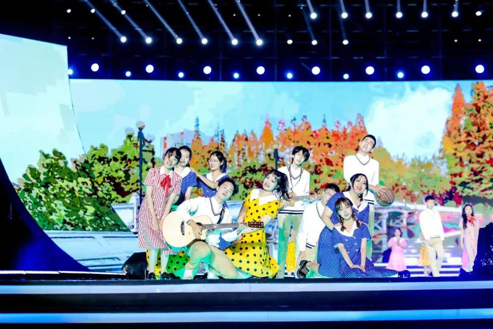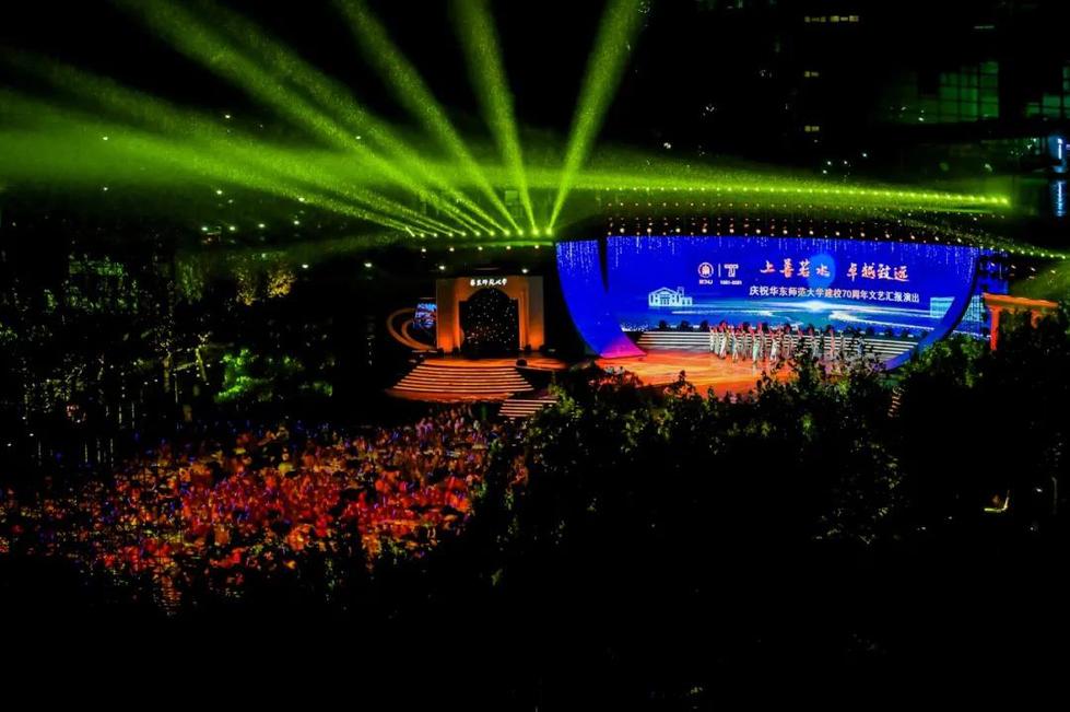 当晚,在华东师大闵行校区樱桃河畔,八千余名师生校友在线下、100万余名观众通过线上多直播平台观看文艺演出。为生动讲述这座“两河流域”大学70年来“为党育人,为国育才”的不变追寻,“大江大河,弄潮逐浪”的矢志探索,文艺演出以“水”作为贯穿始终的意象。