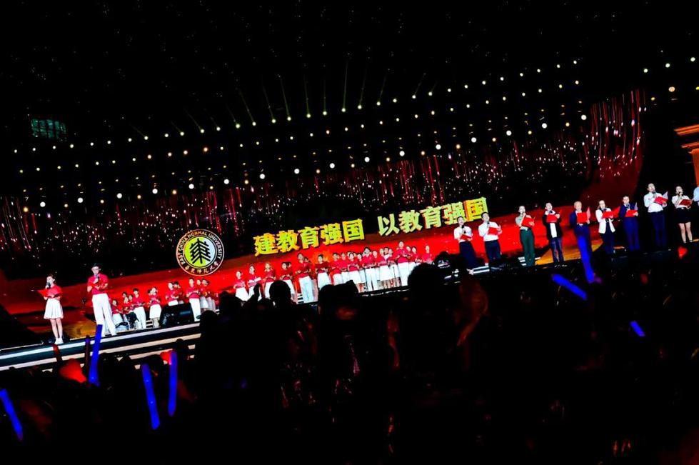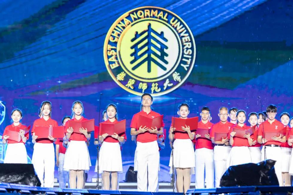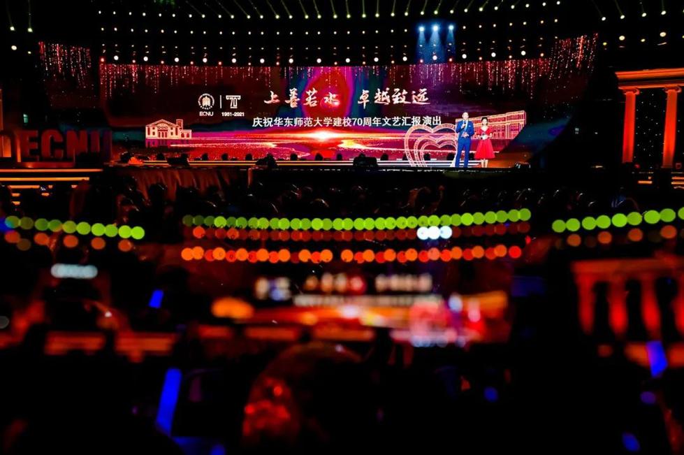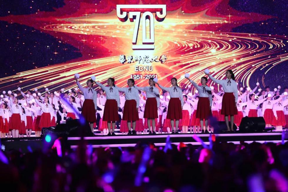 晚会上,校庆歌曲《上善若水》《薪火相传天地间》讴歌华东师大人的智慧与品格,舞蹈《流光叙》演绎流水的宽厚与温润、不息与坚韧;歌舞组合《时光》梦回校园青葱岁月,在《爱在华师大》的歌声中,70位华东师大人分享“爱上华师大”的70个理由。奋进与温暖交织,展现师大人七十载上下求索的奔涌故事。