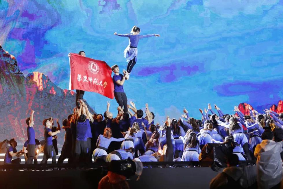 华东师大立德树人、因材施教,实现梦想的方式有无限可能。“王者之师”、华东师大全明星健美操啦啦操队表演《攀高行远》致敬将论文写在祖国大地上的华东师大科研工作者。