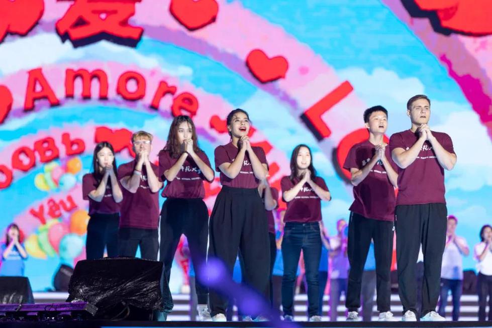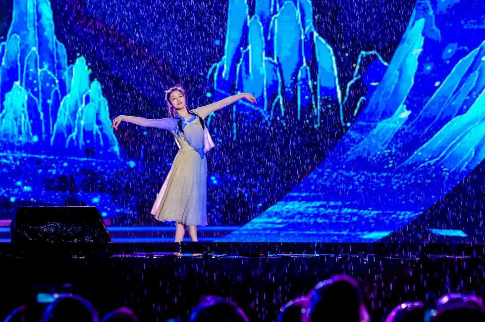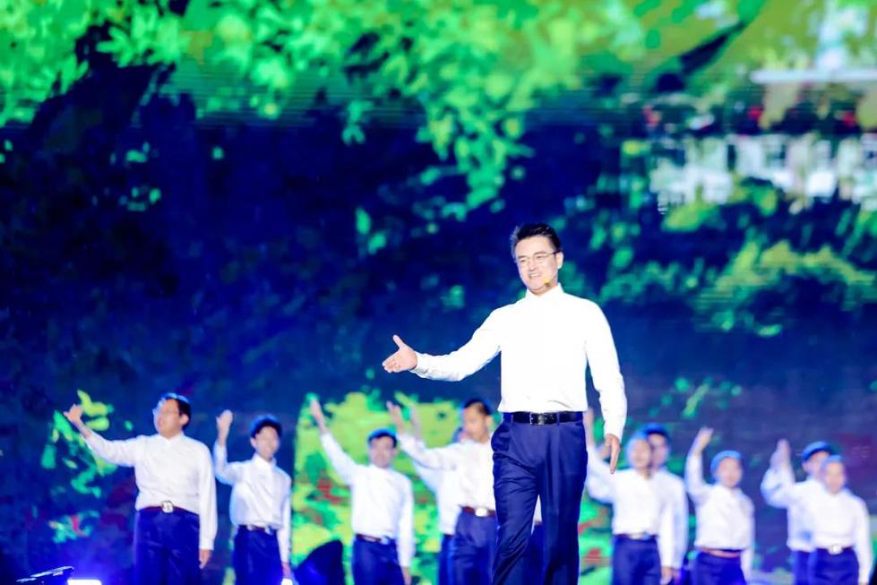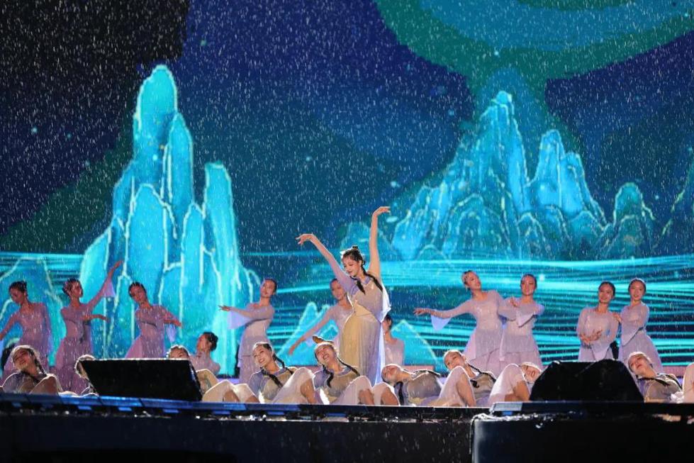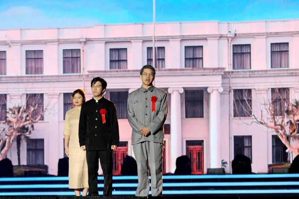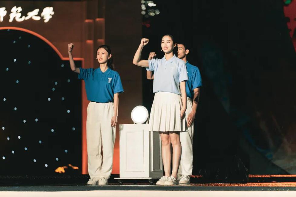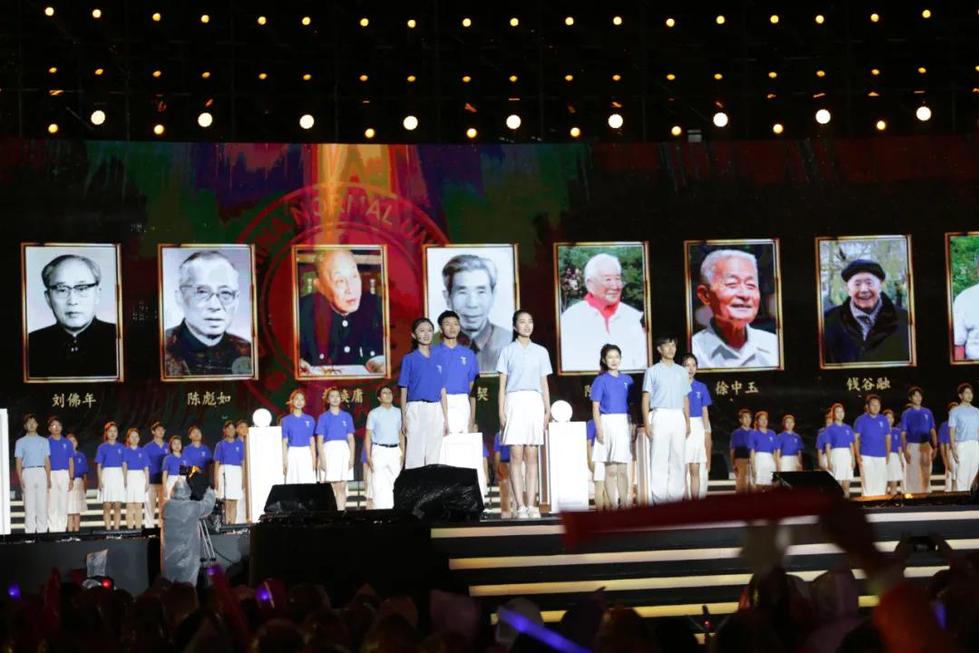 在“中流击水”“川流不息”“奔流向海”三个篇章中,以校友林海、赵梦然与学生杨晨、龙文萱为讲述人,千余名师生演员走心呈现了一场以音、画、诗、舞、歌结合的沉浸式演出。