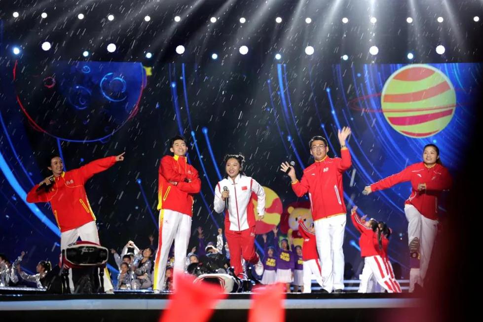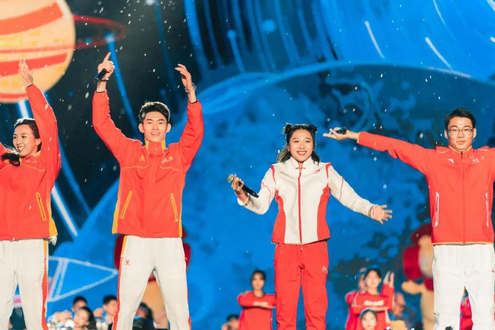 体育与健康学院 2017 级本科生、在东京奥运会和全运会赛场不断创造奇迹的“小哪吒”葛曼棋与华东师大田径队教练陈泷,队友林雨薇、凌佳瑜、曾建航献唱《大梦想家》,来自华东师大附属幼儿园、小学、中学的近两百名同学同台演出,7只幸福花狮与观众现场互动。