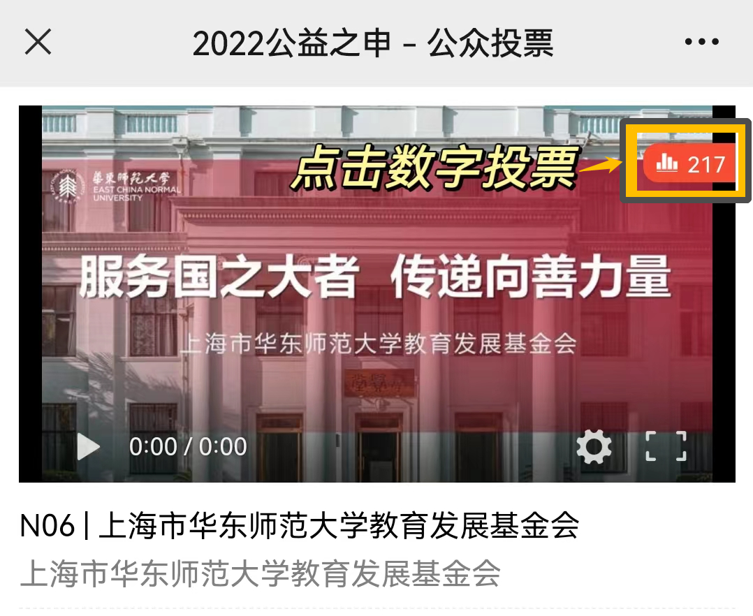 选择“NO6|上海市华东师范大学教育发展基金会”,点击右上角数字即可投票